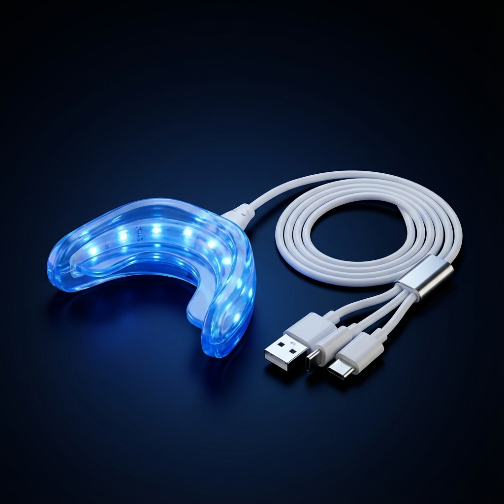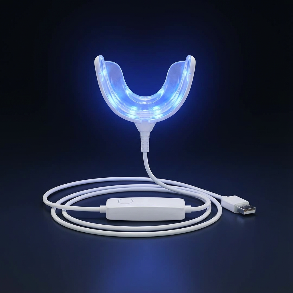 La lumière LED bleue active le gel blanchissant pour éclaircir les dents rapidement et efficacement.